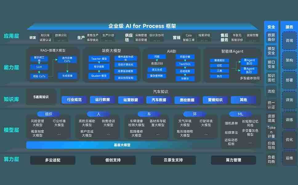 9001cc 以诚为本问学智车解决方案是一套基于AI技术的汽车行业智能化系统,,,,覆盖从底层算力到顶层AI应用的全栈方案。。。。方案由算力层、、模型层和应用层组成:算力层,,方案支持多种一体机配置,,,,具备云端灵活部署、、、、多云适配以及动态优化计算资源的能力;模型层,,,,9001cc 以诚为本问学平台版提供了企业级AI应用一站式构建与管理平台,,支持基于后训练强化技术的汽车企业专属模型的训练、、、、评测和运营;应用层,,,9001cc 以诚为本问学DeepSeek版提供包括超级员工、、、、智能招采、、智能营销、、智能客服、、、、AI for BI等一系列解决方案,,,,可助力汽车行业实现数字化转型,,,让管理更智能、、、响应更敏捷。。。